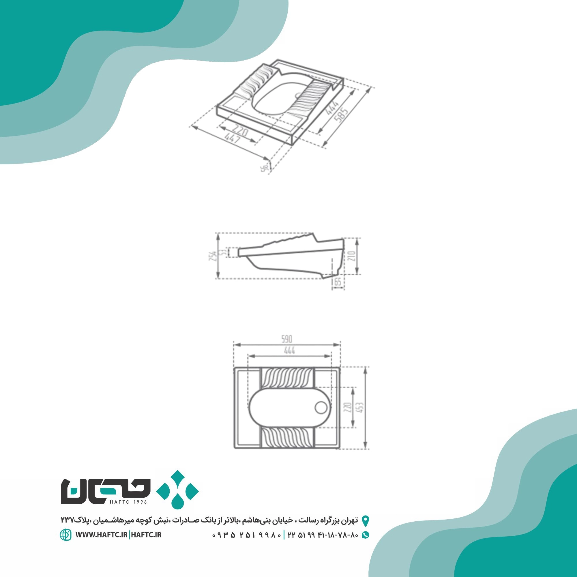 - ابعاد توالت ایرانی (cm): 59×45.3×25.4