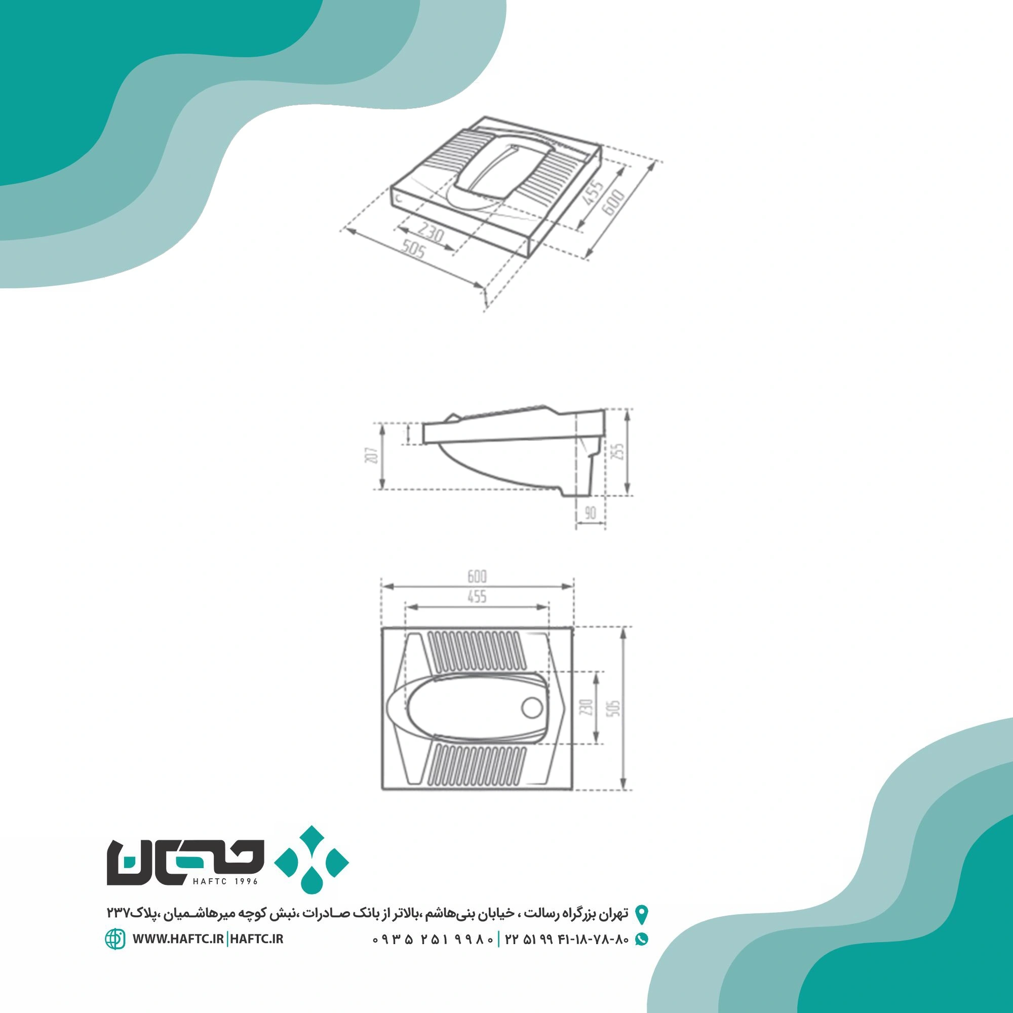 - ابعاد توالت ایرانی (cm): 23.8*52*61.2