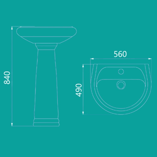 روشویی پایهدار چینیکرد مدل دافنه 56